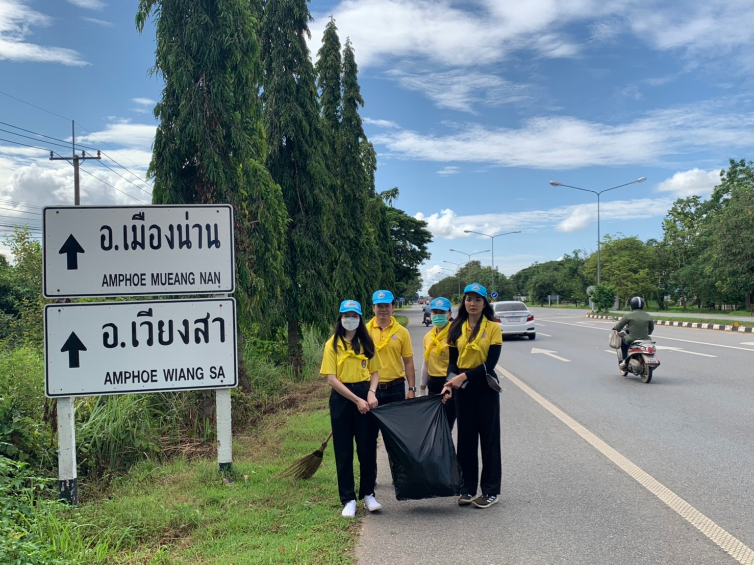 นายอภิชาติ ชาญธัญกร ผู้อำนวยการแขวงทางหลวงน่านที่ 2 พร้อมด้วยข้าราชการ และเจ้าหน้าที่แขวงทางหลวงน่านที่ 2 จัดกิจกรรมพัฒนาถนนเฉลิมพระเกียรติตามโครงการ 1 จังหวัด 1 ถนนเฉลิมพระเกียรติ โดยการตัดแต่งต้นไม้ เก็บขยะ สองข้างทาง และทาสี Curb เกาะกลาง บริเวณทางหลวงหมายเลข 101 ตอนสี่แยกช้างเผือก-ปัว ระหว่างช่วง กม.369 + 730 - กม.371+500