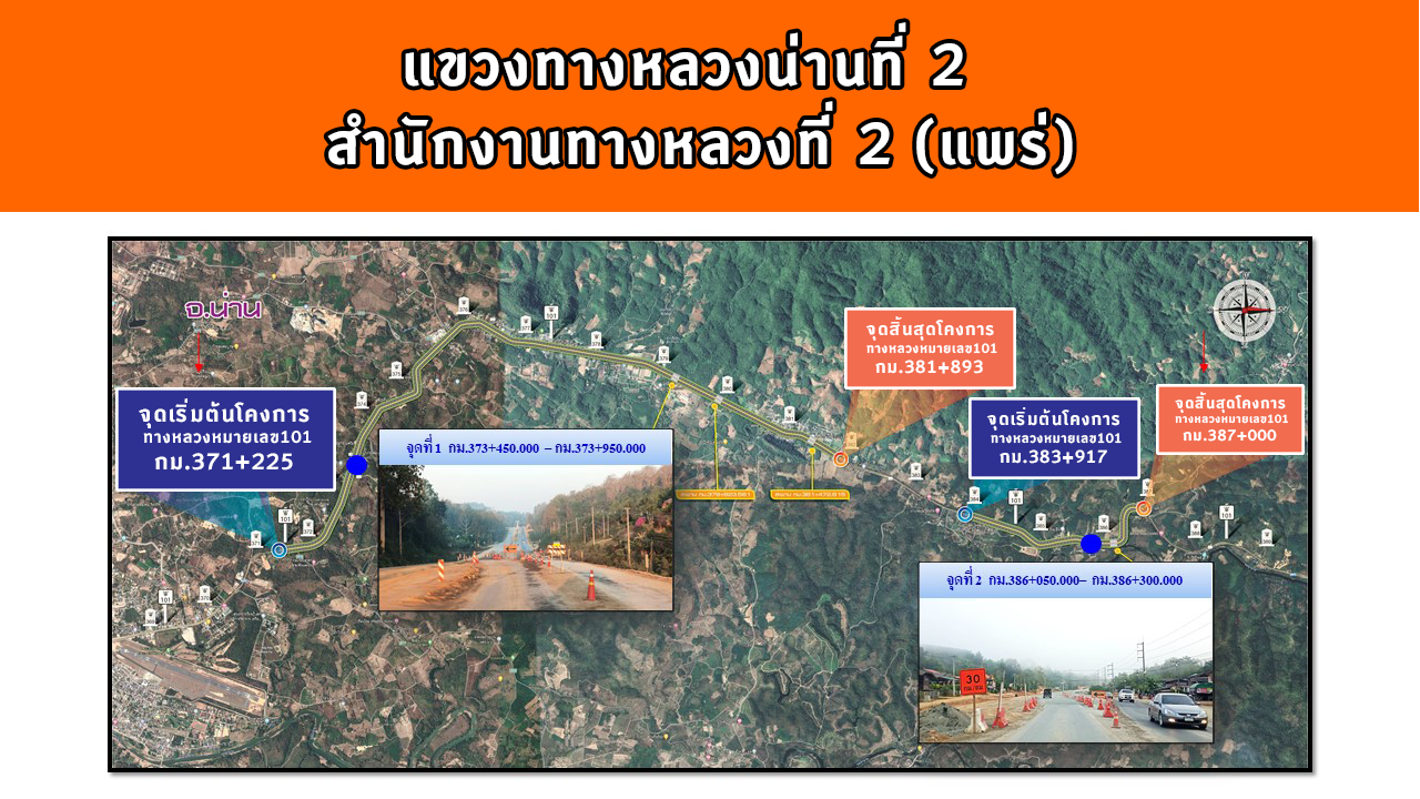 แขวงทางหลวงน่านที่ 2 ขอให้ผู้ใช้รถใช้ถนนใช้ความระมัดระวังในช่วงโครงการก่อสร้างทางหลวงหมายเลข 101 สาย น่าน - อ.ท่าวังผา ตอน น่าน - ต.บ่อ กม.371+225 - กม.381+893 และ กม.383+917 - กม.387+000 และในโครงการก่อสร้างมีทางเบี่ยง จำนวน 2 จุด ดังนี้