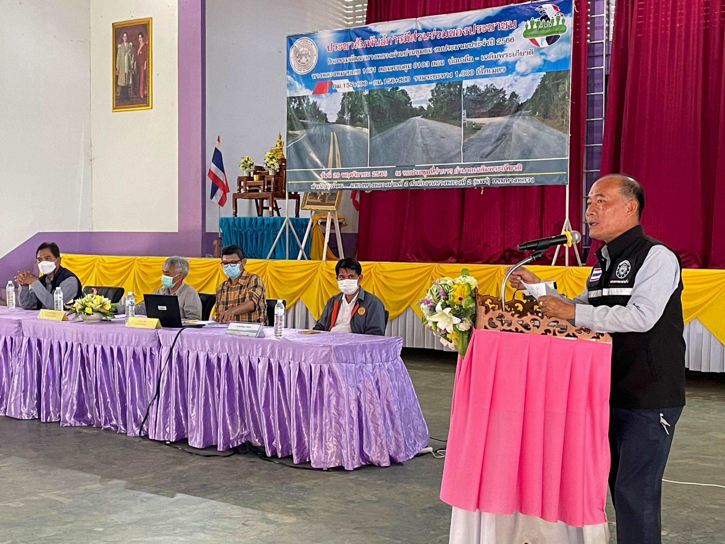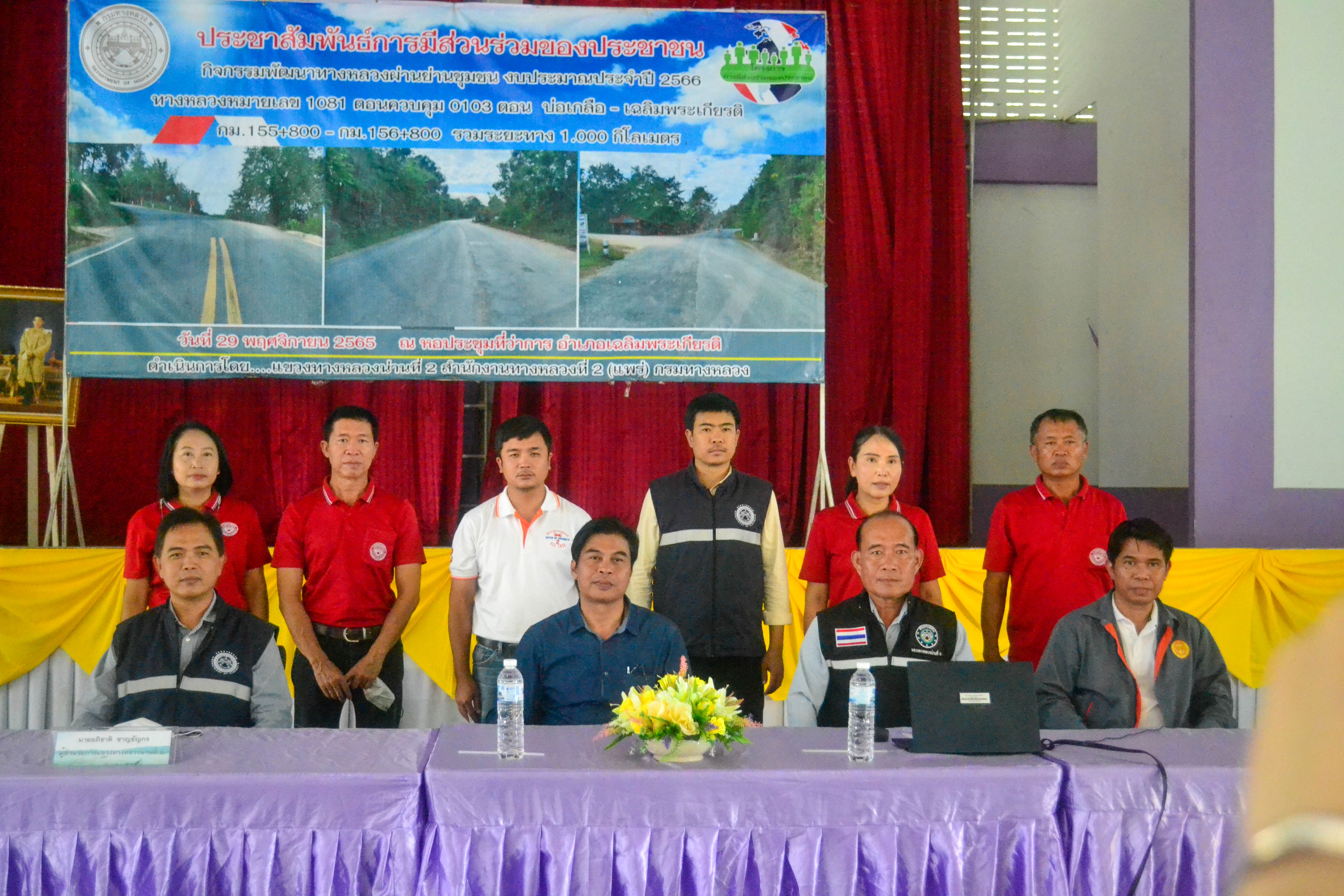 นายอภิชาติ ชาญธัญกร ผู้อำนวยการแขวงทางหลวงน่านที่ 2 พร้อมด้วยข้าราชการ และเจ้าหน้าที่แขวงทางหลวงน่านที่ 2 จัดประชุมชี้แจงและรับฟังความคิดเห็นของประชาชนโครงการกิจกรรมพัฒนาทางหลวงผ่านย่านชุมชนงบประมาณประจำปี 2566 ทางหลวงหมายเลข 1081-0103 ตอน บ่อเกลือ - เฉลิมพระเกียรติ ระหว่าง กม.155+800 - กม.156+800 รวมระยะทาง 1.000 กิโลเมตร ณ หอประชุมที่ว่าการอำเภอเฉลิมพระเกียรติ อำเภอเฉลิมพระเกียรติ จังหวัดน่าน